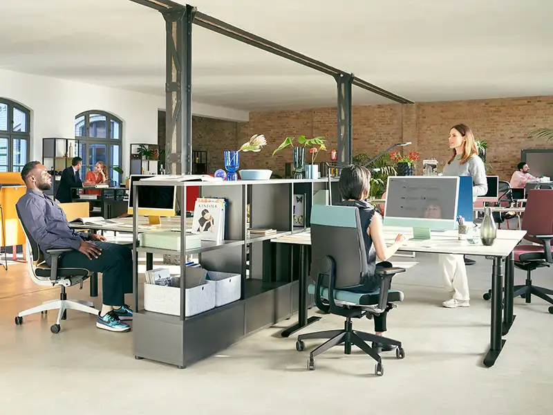 Our standing desks fall into two categories: height-adjustable "sit-stand" workstations and fixed-height desks. Height-adjustable desks allow users to switch effortlessly between sitting and standing positions throughout the day to improve wellbeing. Conversely, fixed-height high tables are set to a standing height, making them perfect for touchdown spaces and standing meetings. They are frequently used in design studios where project work can be laid out for better interaction and collaboration.