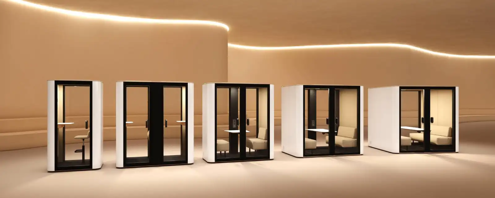 Step inside, and it doesn't feel like a box. The interiors are comfortable, well-proportioned and suited to all-day working, complete with contemporary furnishings, adjustable lighting and a ventilation system that continuously renews the air around you. The larger models feature double doors, making access feel natural and unrestrictive — a detail that reflects the care taken across the entire design.