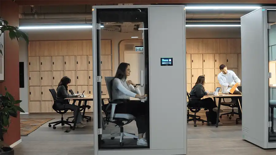 For video conferencing, both the Z & Z2 can be equipped with dimmable face lamps that flank your monitor. The Calma pods' optimised acoustics, with a reverberation reduction time of 0.30 seconds, ensure exceptional voice clarity.