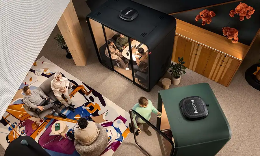 Designed for teams of up to four, the Framery Four Lite, Framery Four and Framery Four Accessible Pods offer a luxurious and spacious workspace. With comfortable seating, a full-sized table with built-in power outlets the framery Four pods provide everything your team needs for productive meetings or focused work. An optional monitor arm is available for presentations and video conferencing.