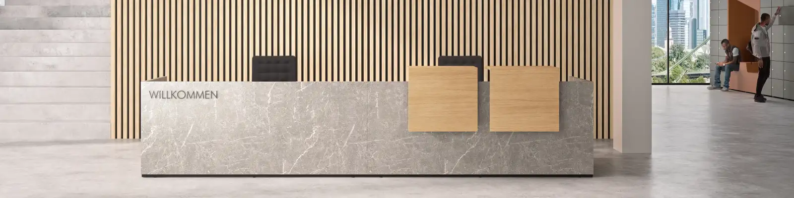 Our ranges are primarily modular in design, allowing for versatile configurations including long or short rectangular counters to curved, and s-shaped welcome counters, that adapt to any floor plan. While these systems offer the speed and flexibility of modularity, they also allow for bespoke finishes and tailoring—ensuring your counter aligns perfectly with your corporate identity. Through high-quality contract materials and ergonomically optimised seating, we ensure a consistently professional and welcoming experience.
